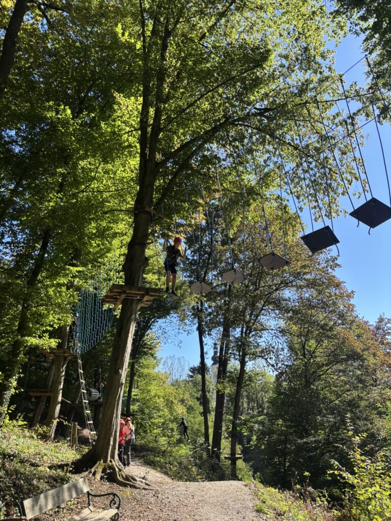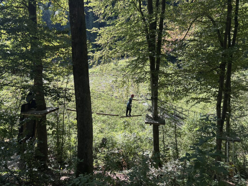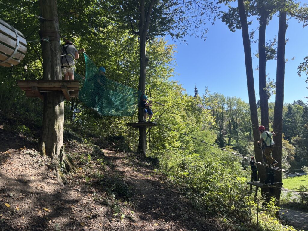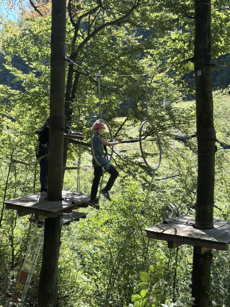 Im Kletterpark konnten die Schüler:innen ihre Geschicklichkeit und ihren Mut unter Beweis stellen. In verschiedenen Schwierigkeitsgraden konnten sie sich zwischen den Bäumen bewegen, Seilrutschen ausprobieren und neue Herausforderungen meistern – Teamgeist und gegenseitige Unterstützung standen dabei im Mittelpunkt.