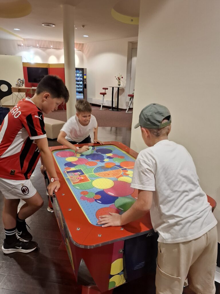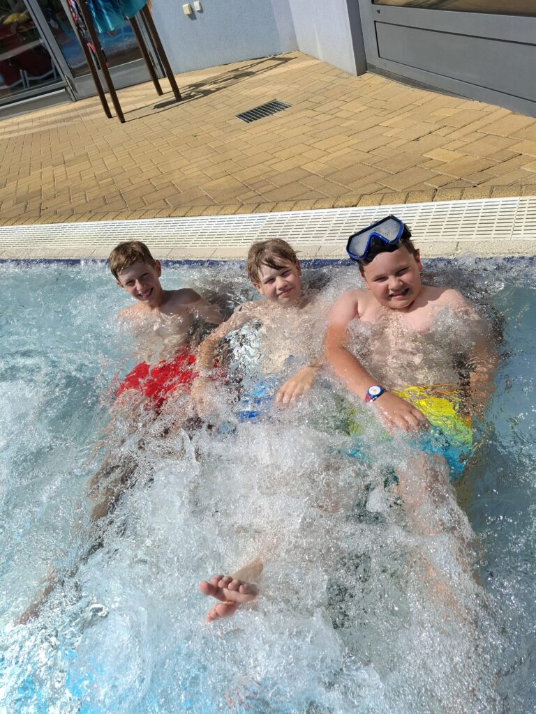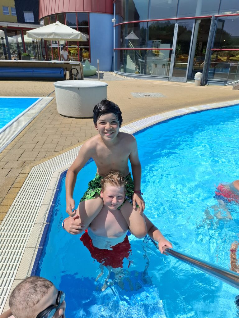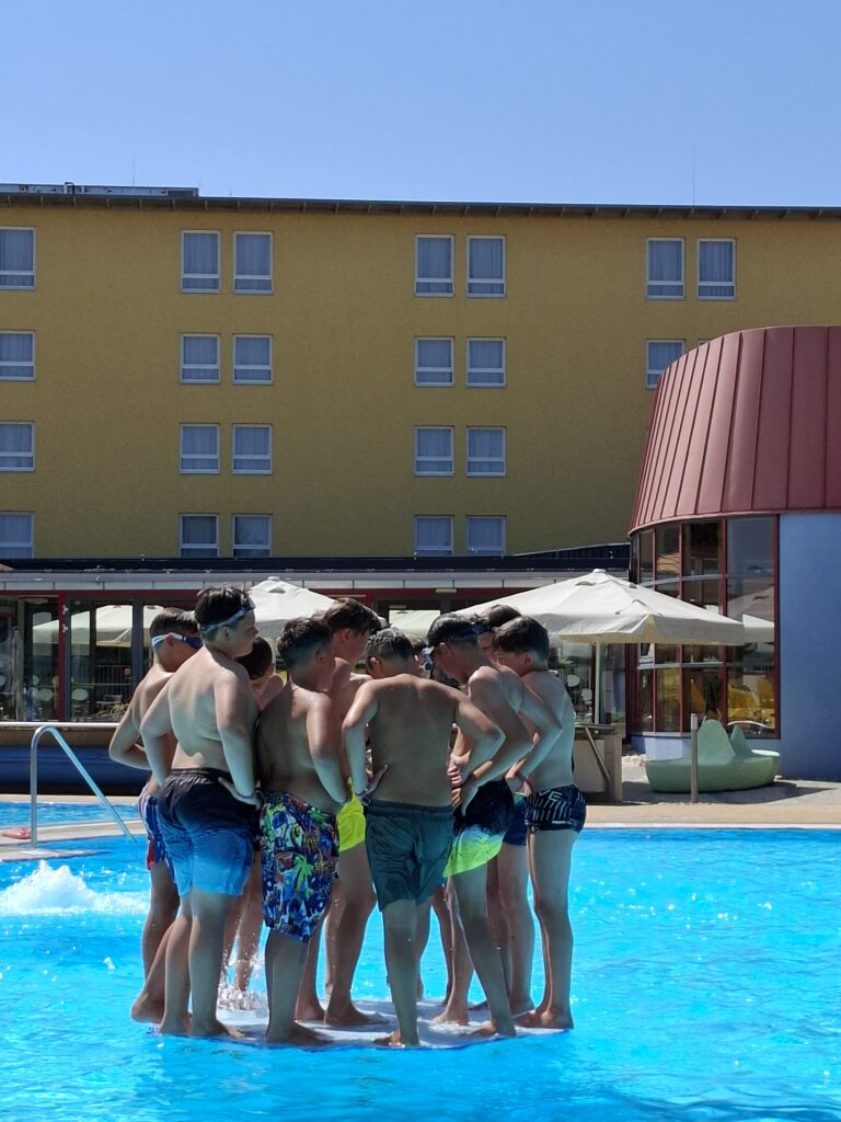 Die Therme bot mit ihren zahlreichen Becken, Rutschen und Spielmöglichkeiten für jeden Geschmack das Richtige. Unsere Schwimmtechnik konnten wir unter Anleitung von professionellen Schwimmtrainern verbessern. Dabei fühlten wir uns wie der sprichwörtliche Fisch im Wasser.