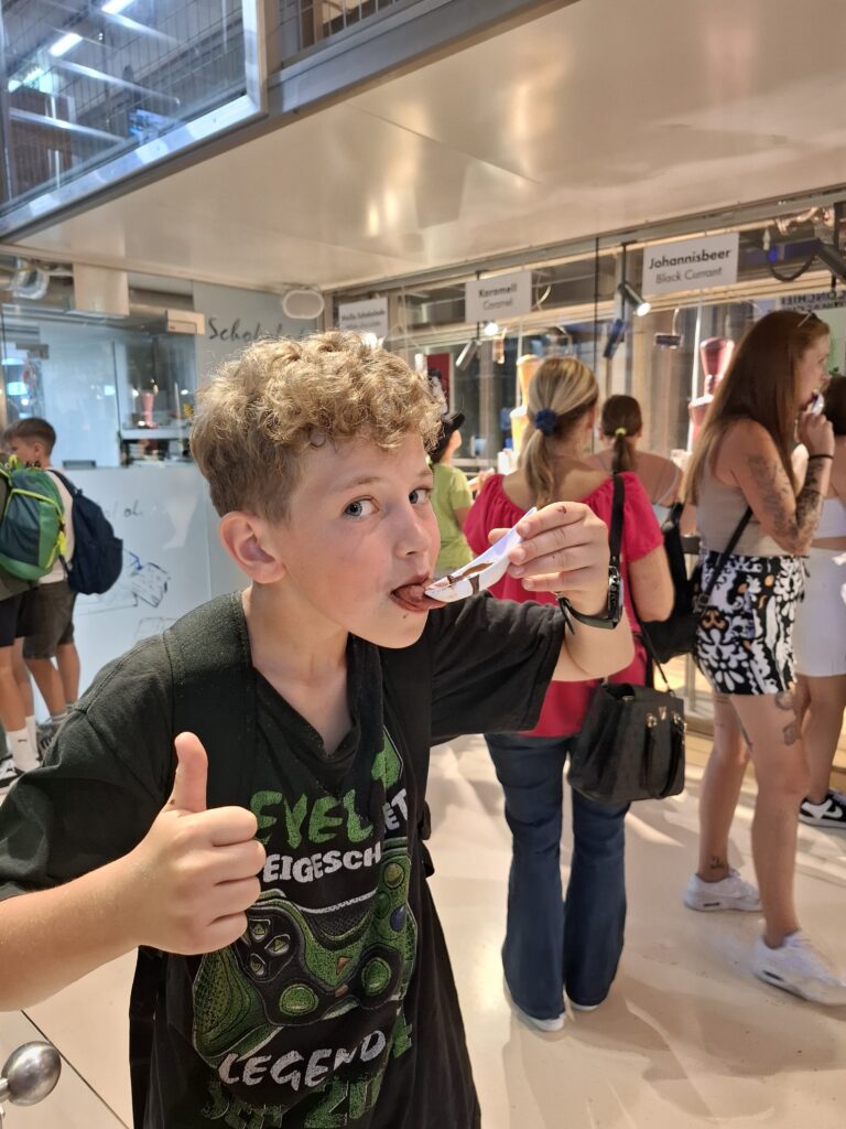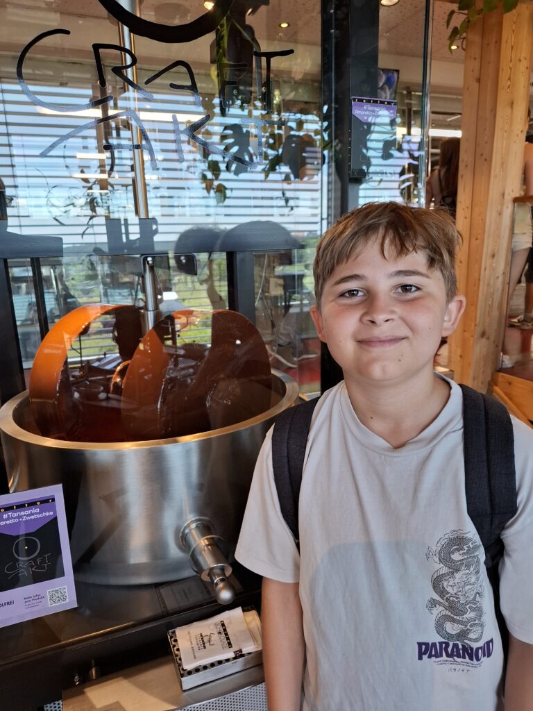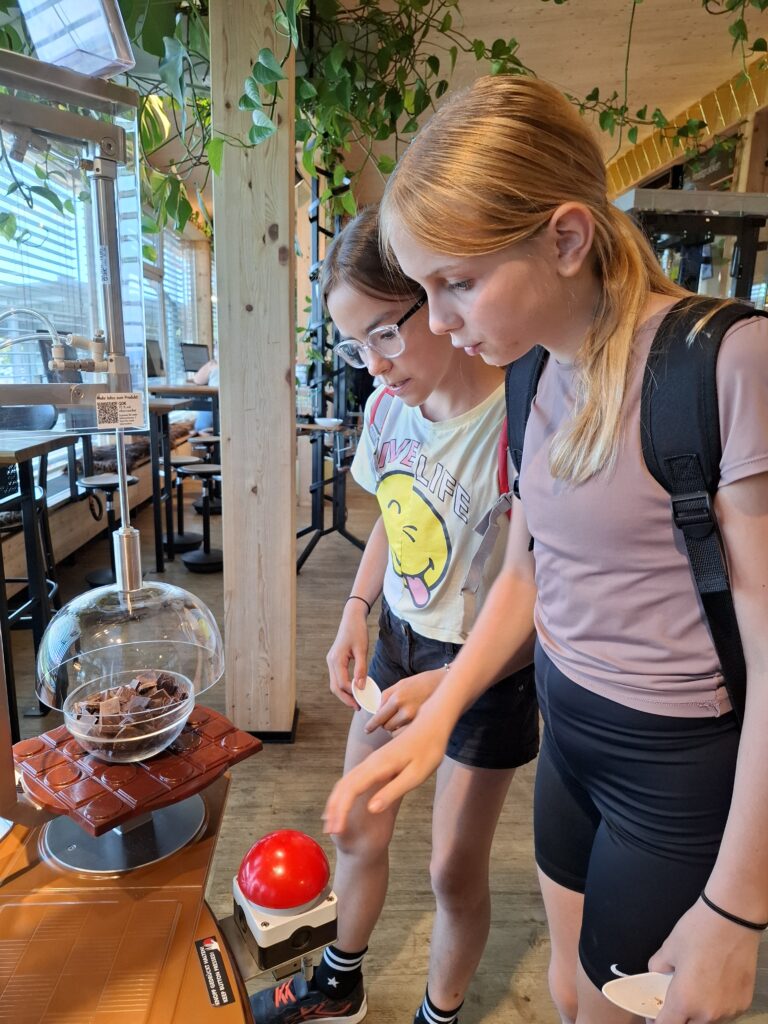 Am dritten Tag erwartete uns ein ganz besonderes Highlight: Ein Besuch in der Zotter Schokoladen Manufaktur. Schon beim Betreten des Gebäudes lag ein unwiderstehlicher Duft von Schokolade in der Luft. Nach einem Kurzbesuch im „Essbaren Tiergarten“ konnten wir in der Schoko-Fabrik den gesamten Weg der Schokolade – von der Kakaobohne bis zur fertigen Tafel – hautnah miterleben. Dabei konnten wir an unzähligen Stationen die verschiedenen Sorten verkosten. Die Kinder waren begeistert von der Vielfalt und den ungewöhnlichen Geschmackskombinationen, die Zotter zu bieten hat. Mit vielen neuen Eindrücken, Erlebnissen und gestärktem Klassenzusammenhalt traten wir danach die Heimreise an.