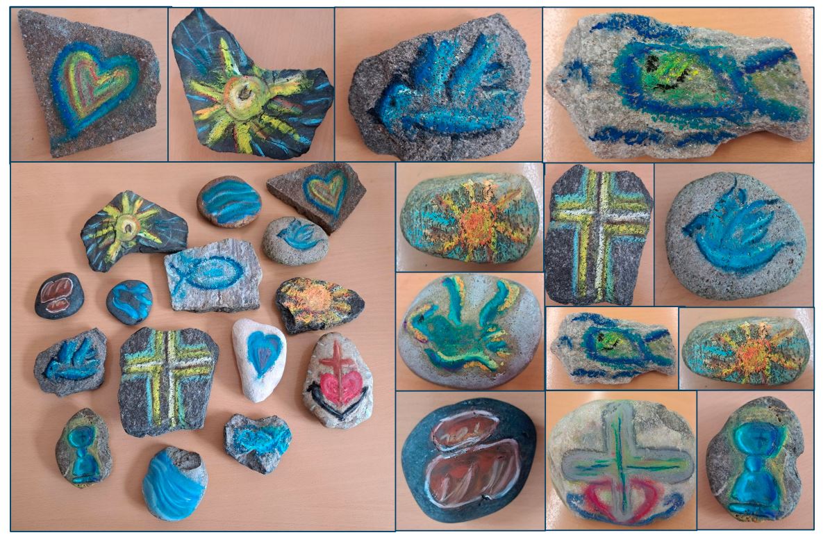 Jetzt im Herbst, wo alles dunkler, kälter, vergänglicher wirkt, haben wir in Religion über die Probleme und Sorgen unserer Gesellschaft gesprochen. Damit wir an diesen nicht zerbrechen wollen wir „TROST“ spenden und uns so gegenseitig unterstützen. In Form von Trostworten und den hier entstandenen Troststeinen, welche wir zu Allerseelen an die Gräber bringen, wollen wir ein Zeichen der Mitmenschlichkeit und des Glaubens setzen.