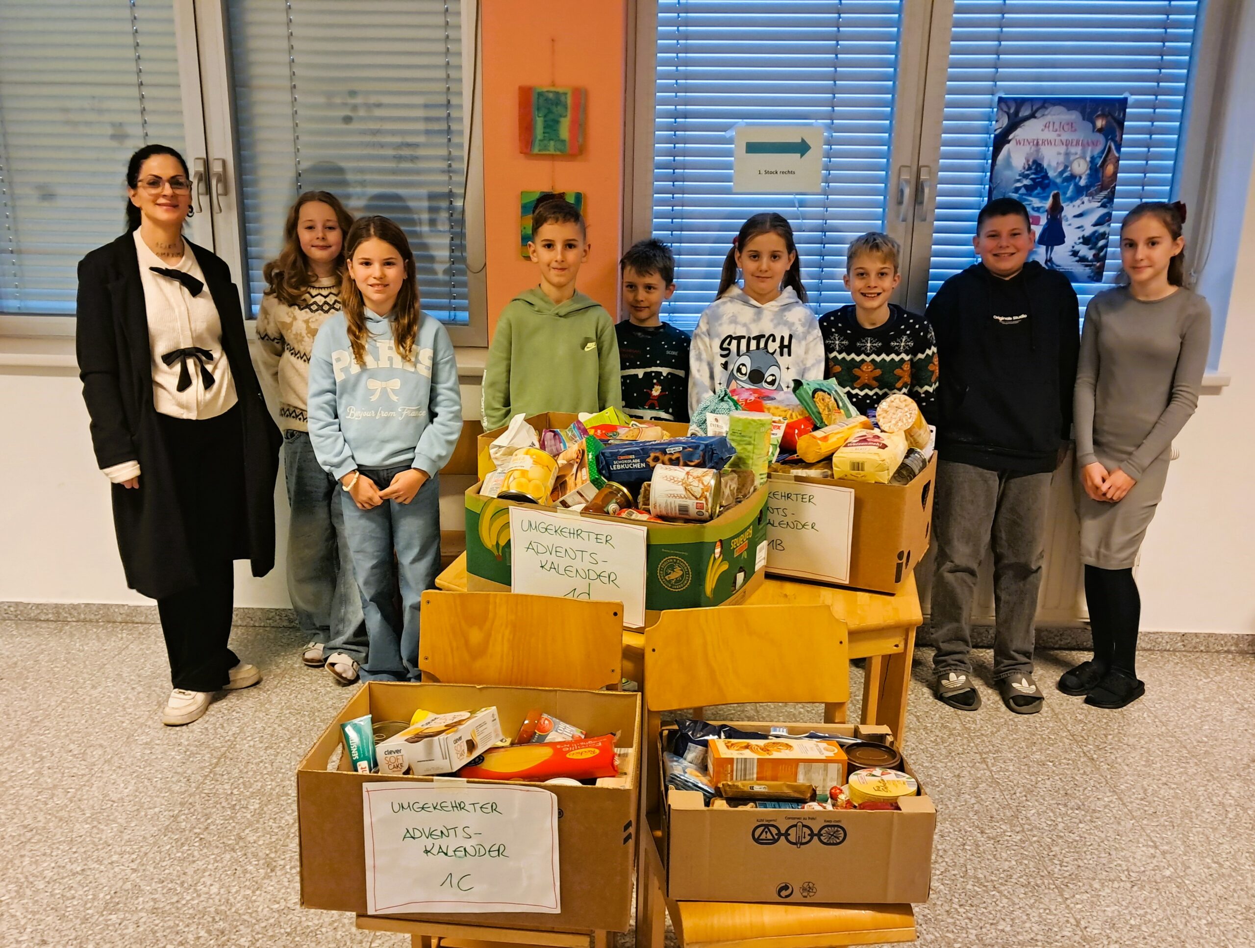 Die ersten Klassen haben die Adventszeit genutzt, um anderen eine Freude zu machen und ein Zeichen der Solidarität zu setzen, indem sie an der Aktion „Umgekehrter Adventskalender“ teilgenommen haben. Es handelt sich dabei um eine gemeinsame Spendenaktion, bei der das Helfen im Mittelpunkt steht.