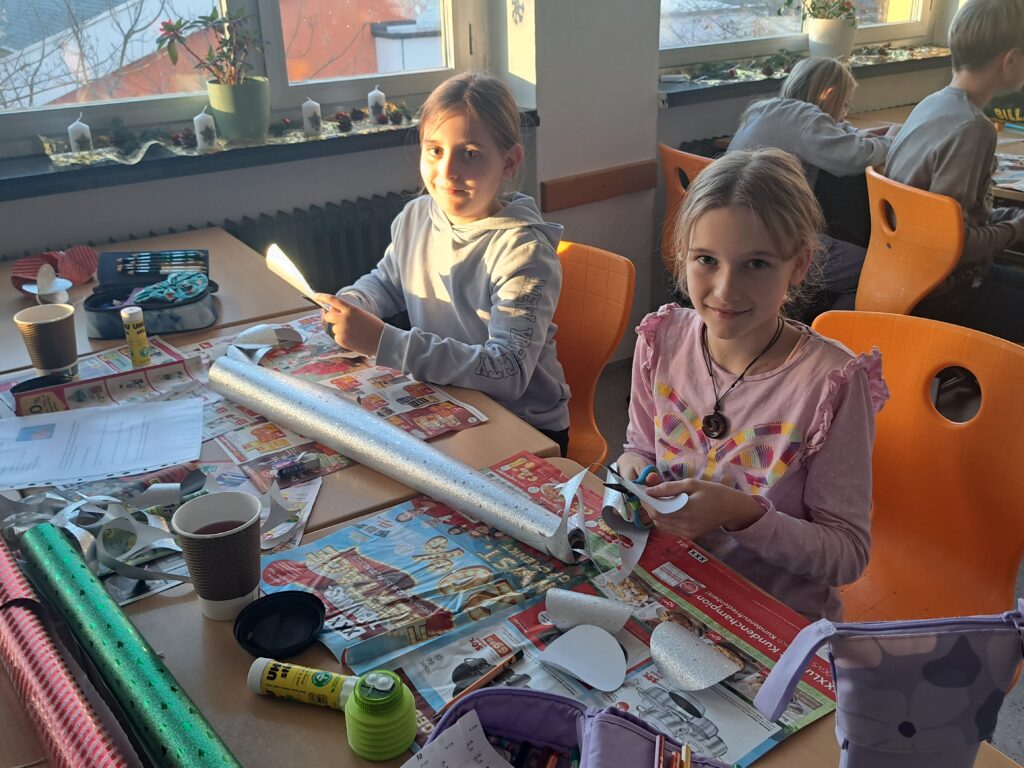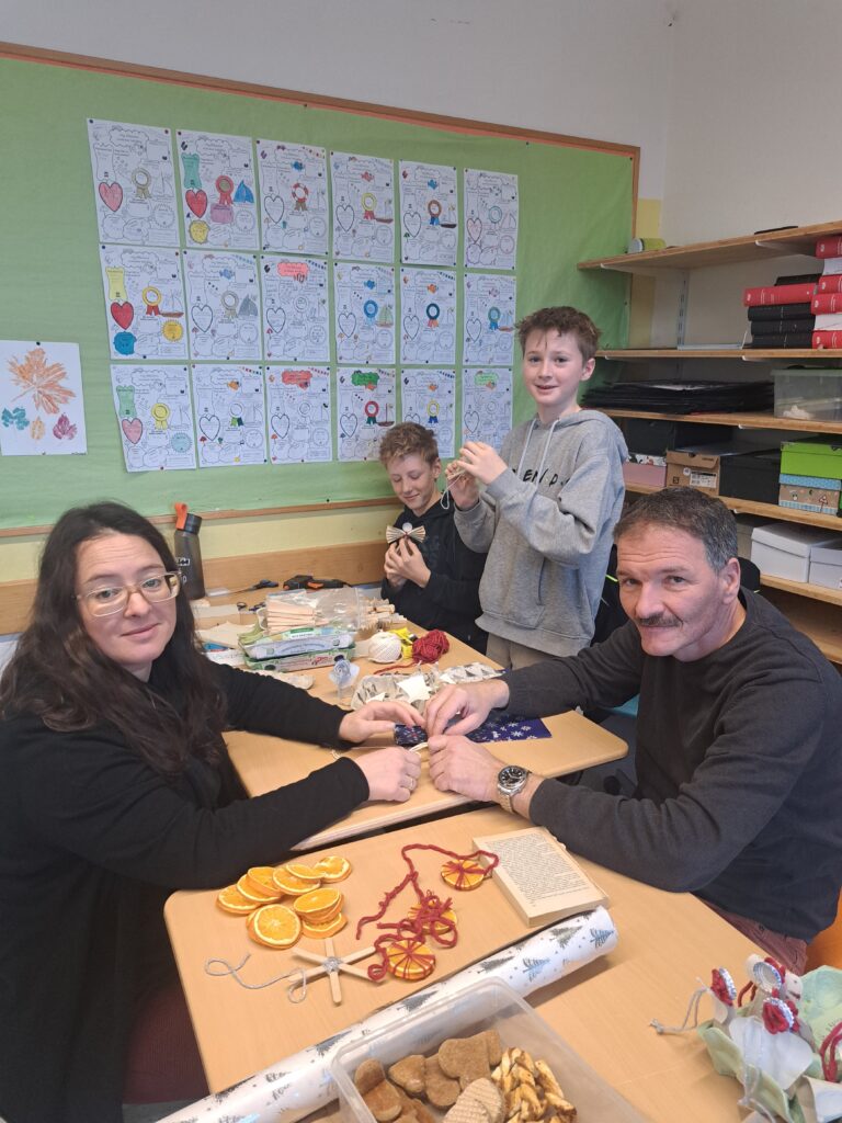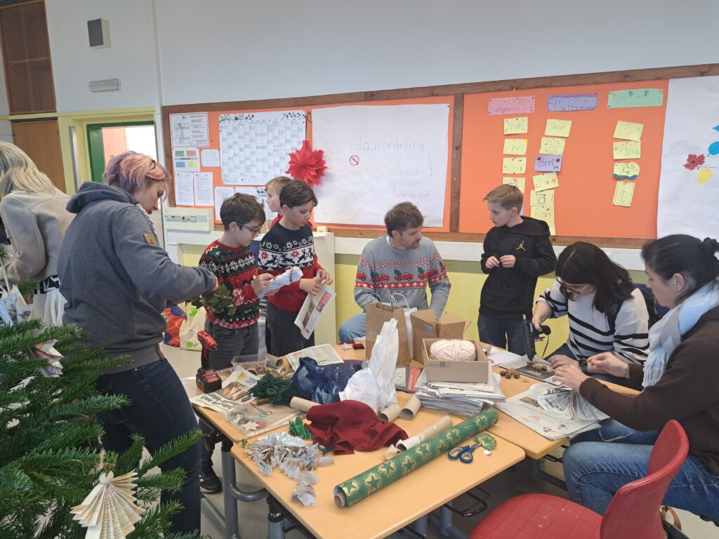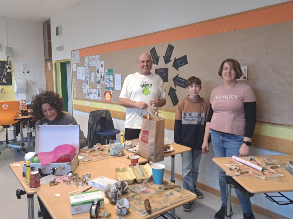 Ein großes Dankeschön gilt den zahlreichen Eltern und Verwandten, die die Schülerinnen und Schüler tatkräftig unterstützt haben. Sie halfen nicht nur beim Sammeln von Materialien und Basteln vor Ort, sondern verwöhnten alle während der Bastelstunden mit Keksen, Kuchen und Getränken, sodass Kreativität und gute Laune bis zum Schluss ansteckend waren.