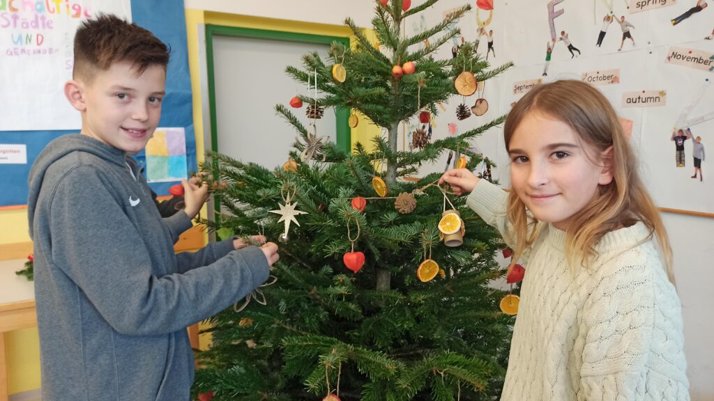 Beide Klassen überzeugten mit besonders originellen und liebevoll gestalteten Weihnachtsbäumen. Als Belohnung erhielt jede Schülerin und jeder Schüler einen HÜ-Gutschein für die Fächer M, D und E/Lesen.